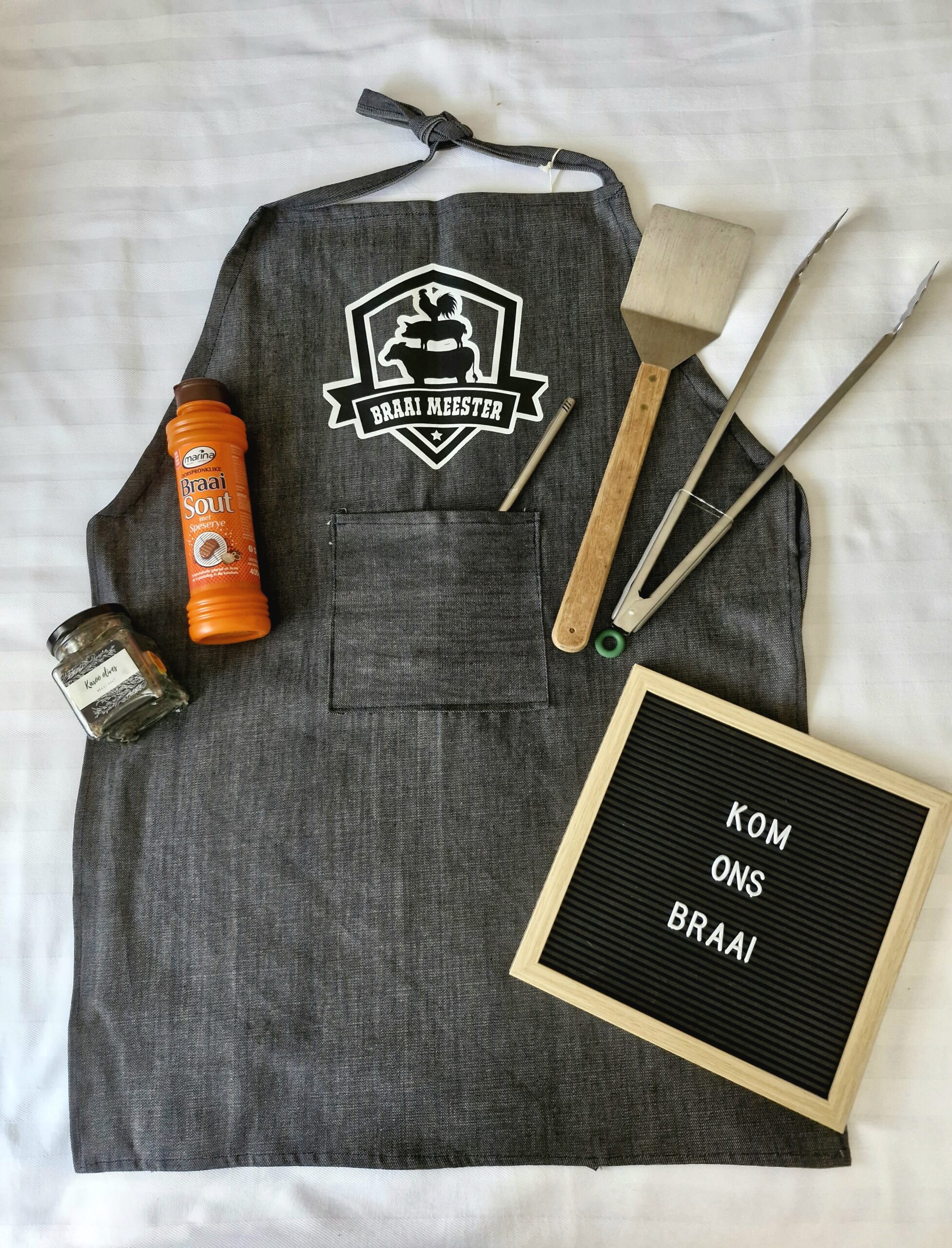 Protect your outfit from splashes and spills with this apron. The design features ties so you can adjust to fit, and a handy front pocket.