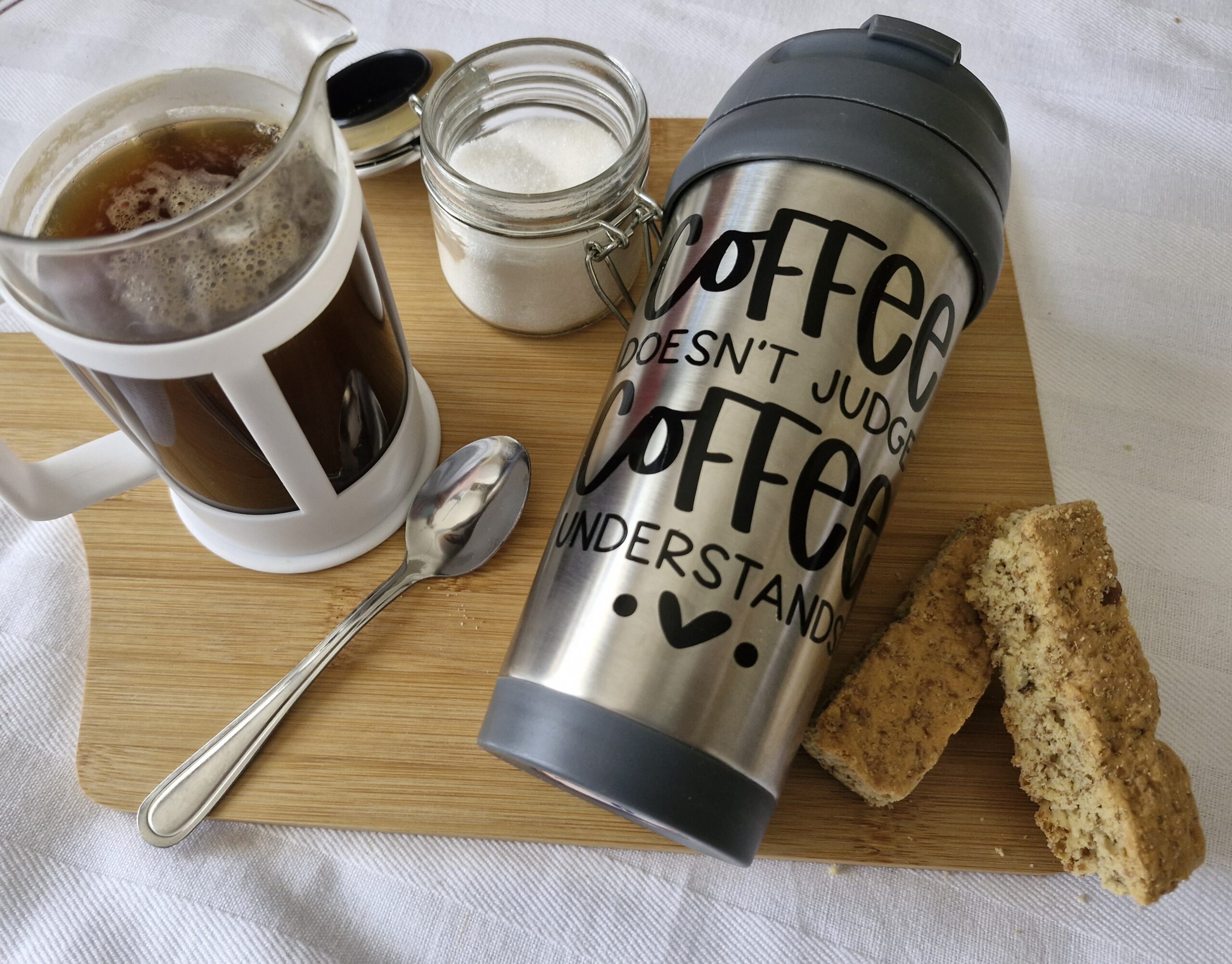 Keep your favourite hot drinks piping hot in style, with this stainless steel travel mug. Whether you are on your way to the office, running errands or watching the game, this handy mug has you covered.